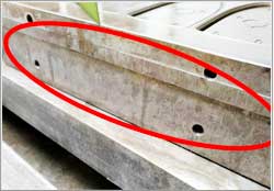 結(jié)構(gòu)隨意,安全系數(shù)低,導(dǎo)柱導(dǎo)套已有不同程度壓傷